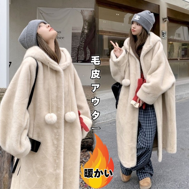 冬人気 厚手 超保温 毛皮アウター 韓国ファッション もこもこロングコート レディース 防寒 暖かいファーアウター 冬 ゆったり体型カバー 百掛け 通勤 裹起毛ジャケット