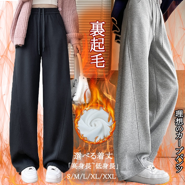 カーブパンツ バレルレッグパンツ 着痩せ 脚長効果 美脚ライン ワイド カーブパンツ 裏起毛 レディース パンツ ワイドパンツ スウェット ウエストゴム ゆったり 体型カバー ジャージ スウェット