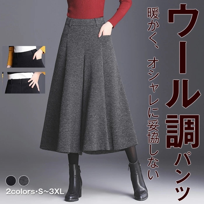 ガウチョパンツ ワイドパンツ レディース 秋冬 きれいめ 9分丈 フレア ミモレ丈 ハイウエスト ガウチョ 大きいサイズ 大人 オフィス 美脚 通勤 黒 無地 ゆったり おしゃれ オフィスカ