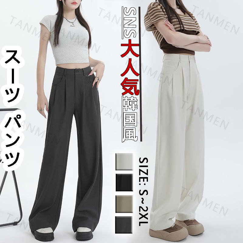 ハイウエスト 美脚 脚長 ストレートパンツ レディース ボタンストワイドパンツ 女性 ワイド パンツ ハイウエスト パンツ ズボン 長ズボン ロングパンツ