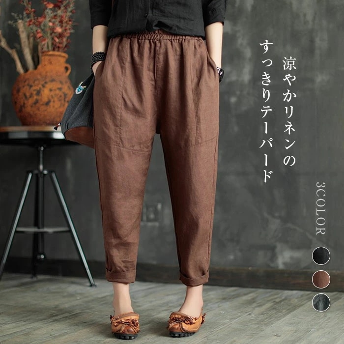 リネン パンツ レディース 9分丈 テーパードパンツ イージーパンツ バルーンパンツ 麻 ウェストゴム 大きいサイズ 春夏 涼しい ゆったり 綿麻 九分丈 おしゃれ リラックス クロップドパンツ 3