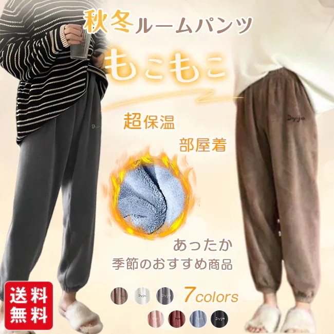 秋冬ルームパンツ ルームウェア 起毛 超保温 あったか もこもこ 厚手 レディース パジャマ 部屋着 ふんわり 肌触り 柔らかい ズボン 可愛い ウエストゴム 暖かい