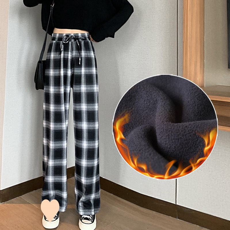 秋冬百合はやせているベルベットのズボンを見せている女性の新しいファッションカジュアルなストレートパンツは曲げ刃のズボンを厚くしている ロングパンツ