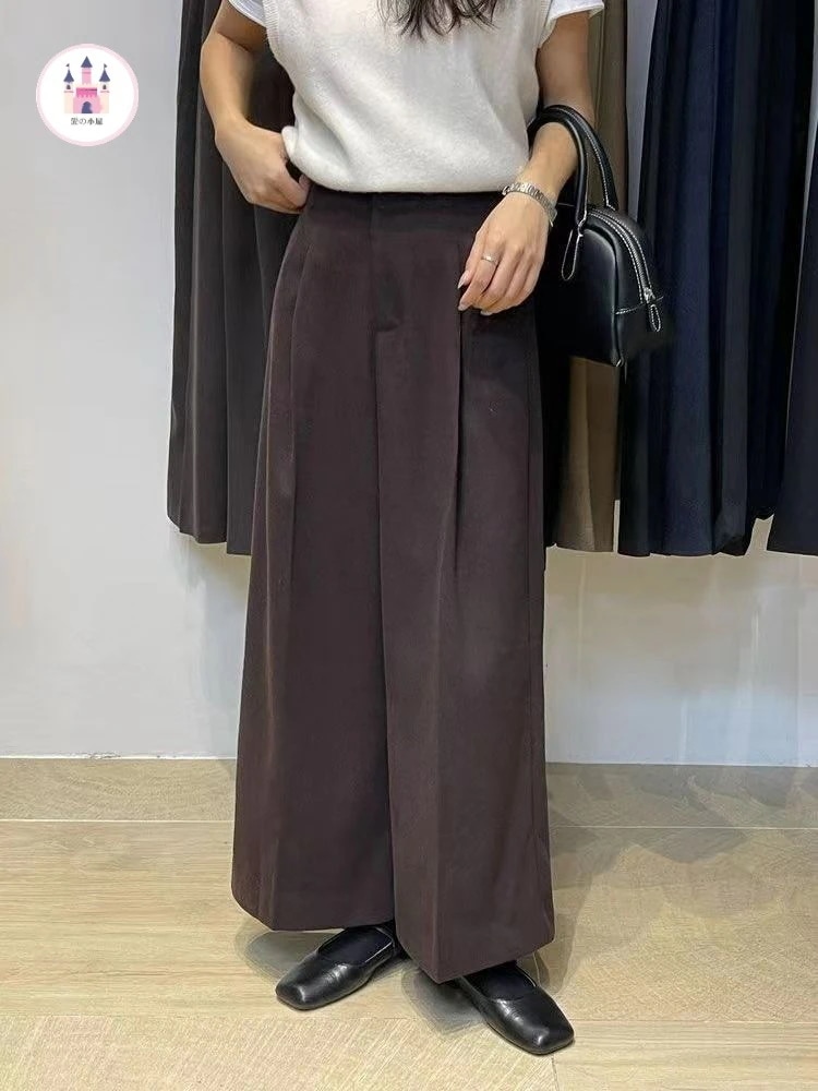 レディースワイドパンツ秋冬2024新型ゆったりストレートギャザー小柄コーデュロイパンツ ロングパンツ