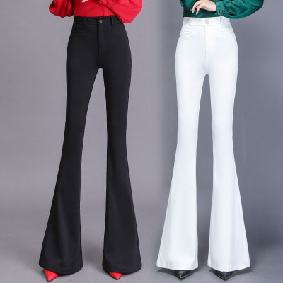 ラッパズボン パンタロン おしゃれ ベルボトム ハイウエスト 体型カバー ヒップアップパンツ カジュアルパンツ ロングパンツ ボタン 無地 レディース