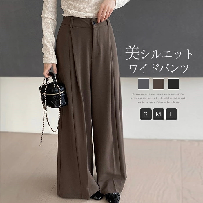 ワイドパンツ レディース 秋 冬 ボトムス ロングパンツ タックワイドパンツ イージーパンツ ワイド ガウチョパンツ タック アンティカ スラックス ロング 美シルエット オリジナル タックパンツ ハ
