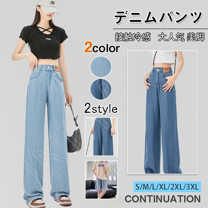 スラックスパンツデニムパンツズボンジーンズハイウエストデニムスキニーパンツワイドパンツレディースパンツロングパンツ韓国ファッション ロングパンツ