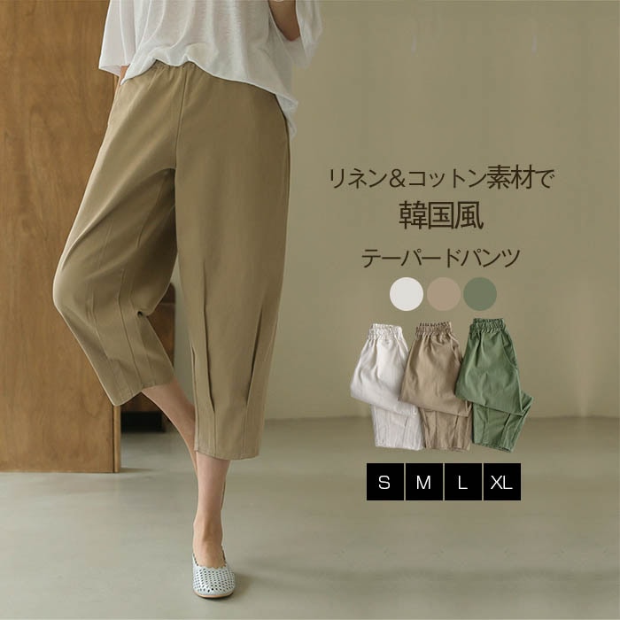 テーパードパンツ パンツ レディース ワイドパンツ リネン風パンツ 九分丈 ボトムス ズボン ウエストゴム 夏 綿麻 ロングパンツ 夏 麻パンツ 春 9分丈 ゆったり 大きいサイズ 無地 体型カバー