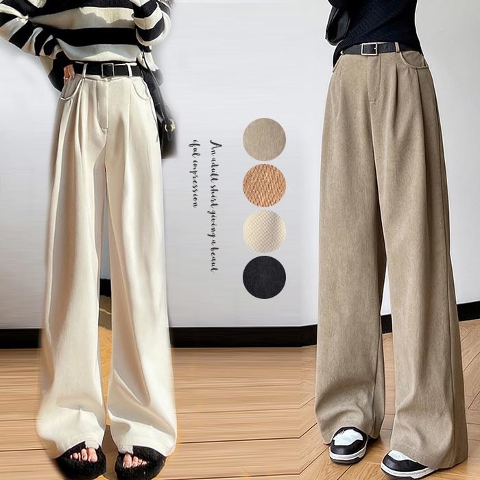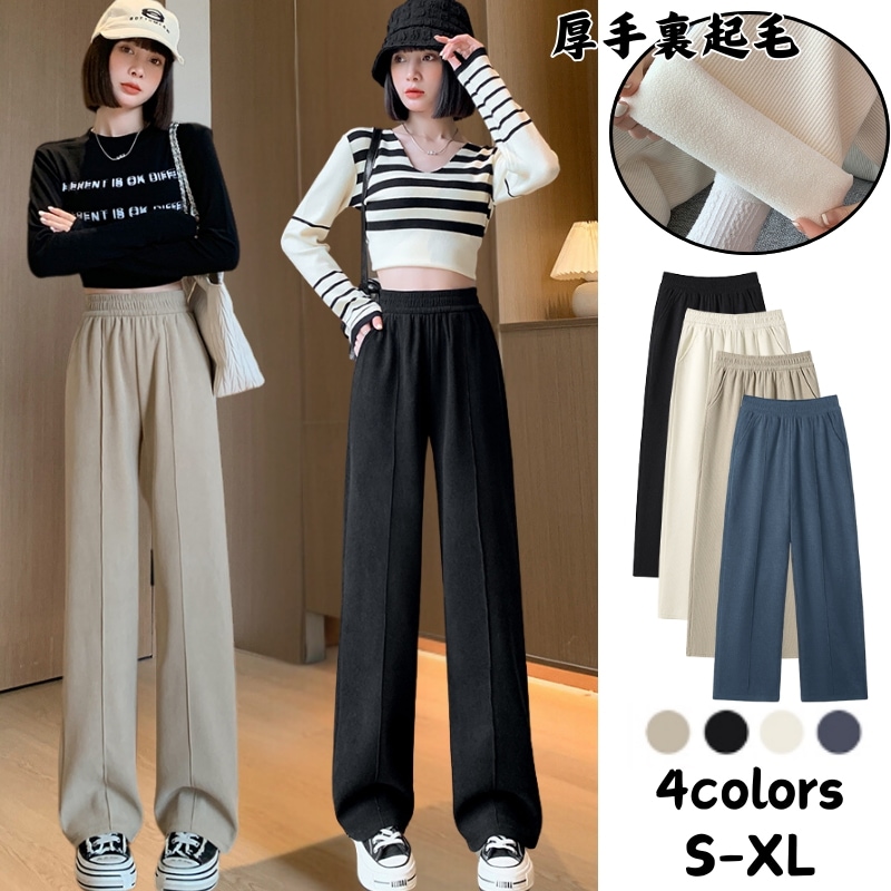 裏起毛パンツ麦穂雪尼爾広脚ズボン女子秋冬高腰直筒加毛厚ニットカジュアルズボンコーデュロイズボン ロングパンツ