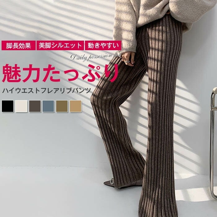 ニットパンツレディースフレアパンツボトムスパンツリブニットロングきれいめワイドパンツフレアパンツ無地ゆったりワンマイルウェアニットフレアパンツイージーパンツフレアおしゃれ大人カジュアル