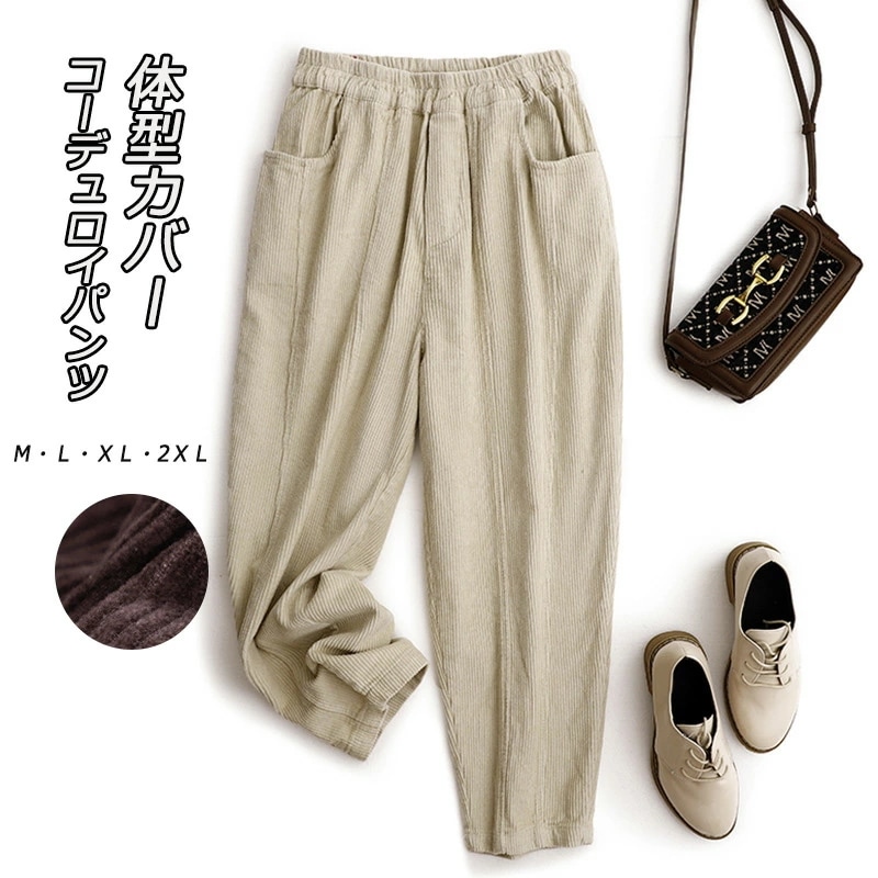 ワイドパンツ コーデュロイ サルエルパンツ レディース 冬 パンツ ワイド ロングパンツ ウエストゴム 秋冬 ロング コクーン タックパンツ パンツ きれいめ ボトムス テーパードパンツ ハロンパンツ