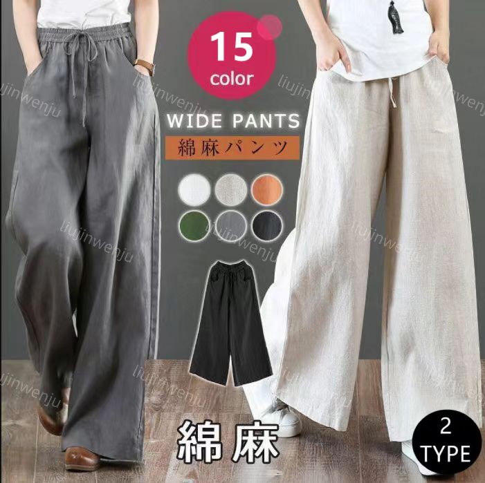 2024改良型ワイドパンツ 綿麻 柔か軽か手触り良 ロングパンツ 柔か軽か手触り良 薄手 爽か涼しゆったりら楽ちんガウチョパンツ 速乾 着痩せ 清涼感 ワイドパンツ