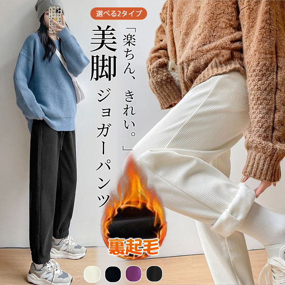 パンツ レディース ウエストゴム ミンクカジュアル リブ ポケット付き あたたかい ヒートパンツ ロングパンツ
