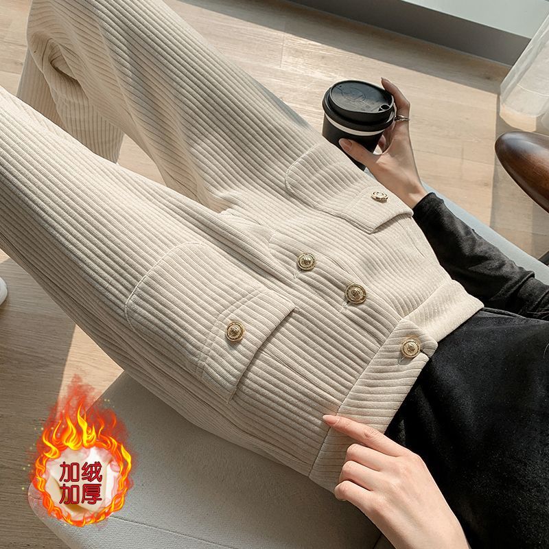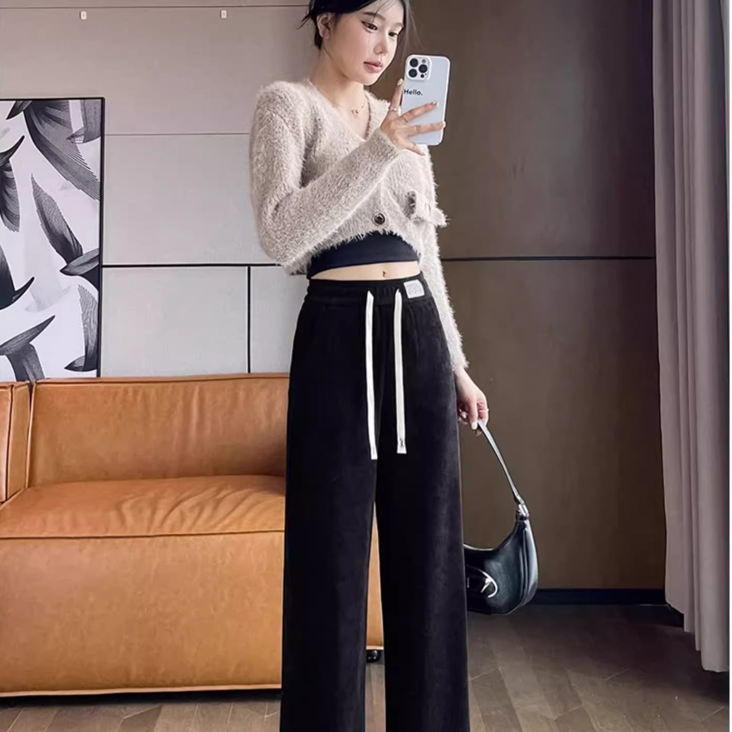 デニムボトムス デニムパンツ 脚長効果 スキニーパンツデニムパンツワイドパンツ加絨加厚ワイドパンツ女性秋ハイウエスト着やせストレートパンツコーデュロイゆったりカジュアルパンツ