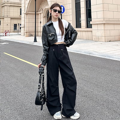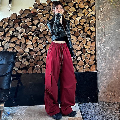 初春 韩国風 カーゴパンツ ロングズボン パンツズライクカーゴパンツゆったりワイドル ひんデニムパンツ ズライクカーゴパンツ ワイドパンツ ロングパンツ