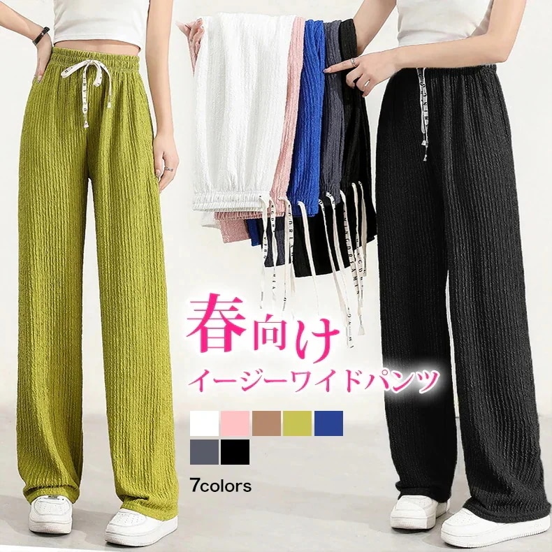 ワイドパンツ レディース 春夏 セミワイドパンツ セミワイド ズボン ジャガードパンツ 長ズボン ロング丈 ワイド ゆったり ボトムス ウエストゴム カジュアル30%までに制限