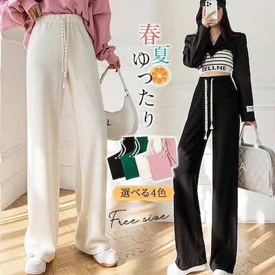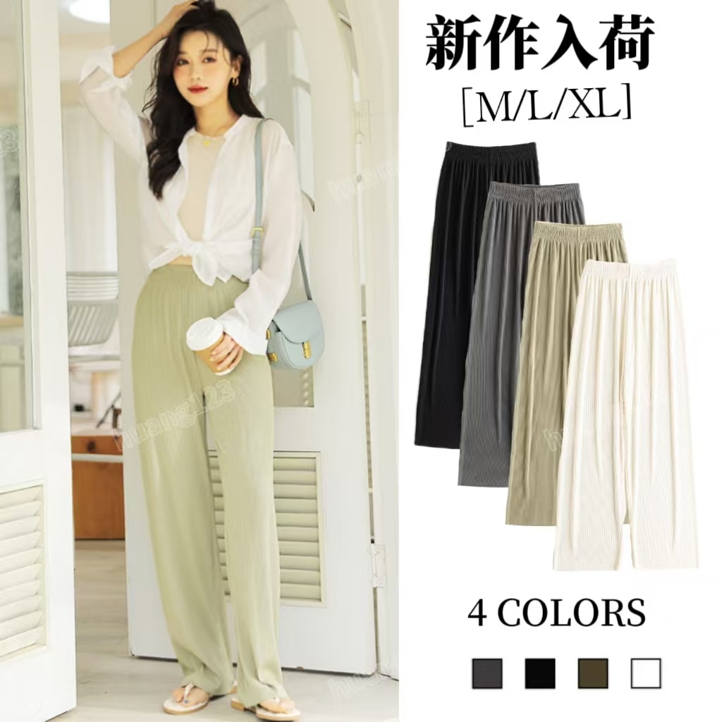 入荷済 超人気商品 春夏レディース ワイドパンツ ワイドパンツ トレンド 韓国ファッション リブ ワイドレッグパンツ レディース 無地 シンプル さらさら リラックス カジュアル おしゃれ