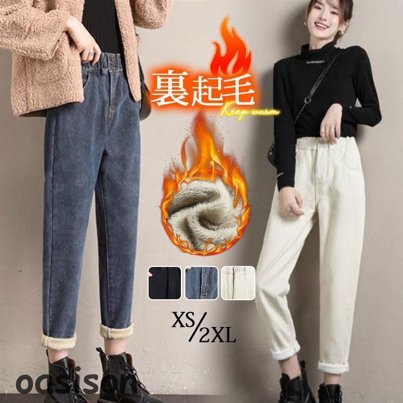 人気商品超目玉 デニムパンツ レディース ジーンズ ウエストゴム サルエル 裏起毛 ジーパン アウトドア 暖い シンプル 保温 オシャレ カジュアル 秋冬