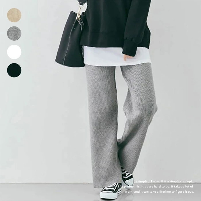 ニットパンツ 秋冬 ワイドパンツ レディース ロングパンツ 美脚 リラックス 暖い カジュアル ボトムス ニットパンツ ゆったり カジュアル