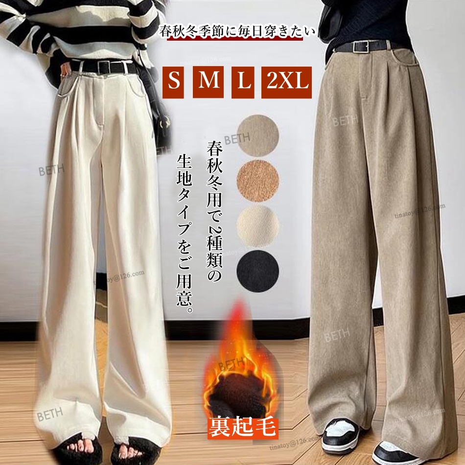 SNS大人気韓国風ワイドパンツ 秋冬 裏起毛 パンツ レディース ロングパンツ 微起毛 ガウチョパンツ 体型カバー パンツ ストレートパンツ ロング ロング丈パンツ コーデュロイ 秋物 裏起毛 ウェス