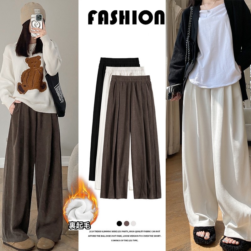 激壳れ人気商品ワイドパンツ 韓国ファッション裏起毛パンツ 秋冬新作パンツ女性パッド入りカジュアルニットストレートパンツドレープワイドパンツ ロングパンツ