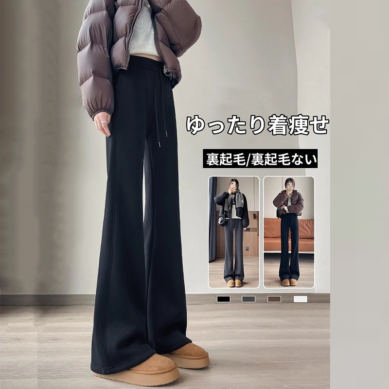 激壳れ人気商品ワイドパンツ 韓国ファッション裏起毛パンツ パッド入りで厚めの膝パッド入りマイクロフレアパンツパンツ ロングパンツ