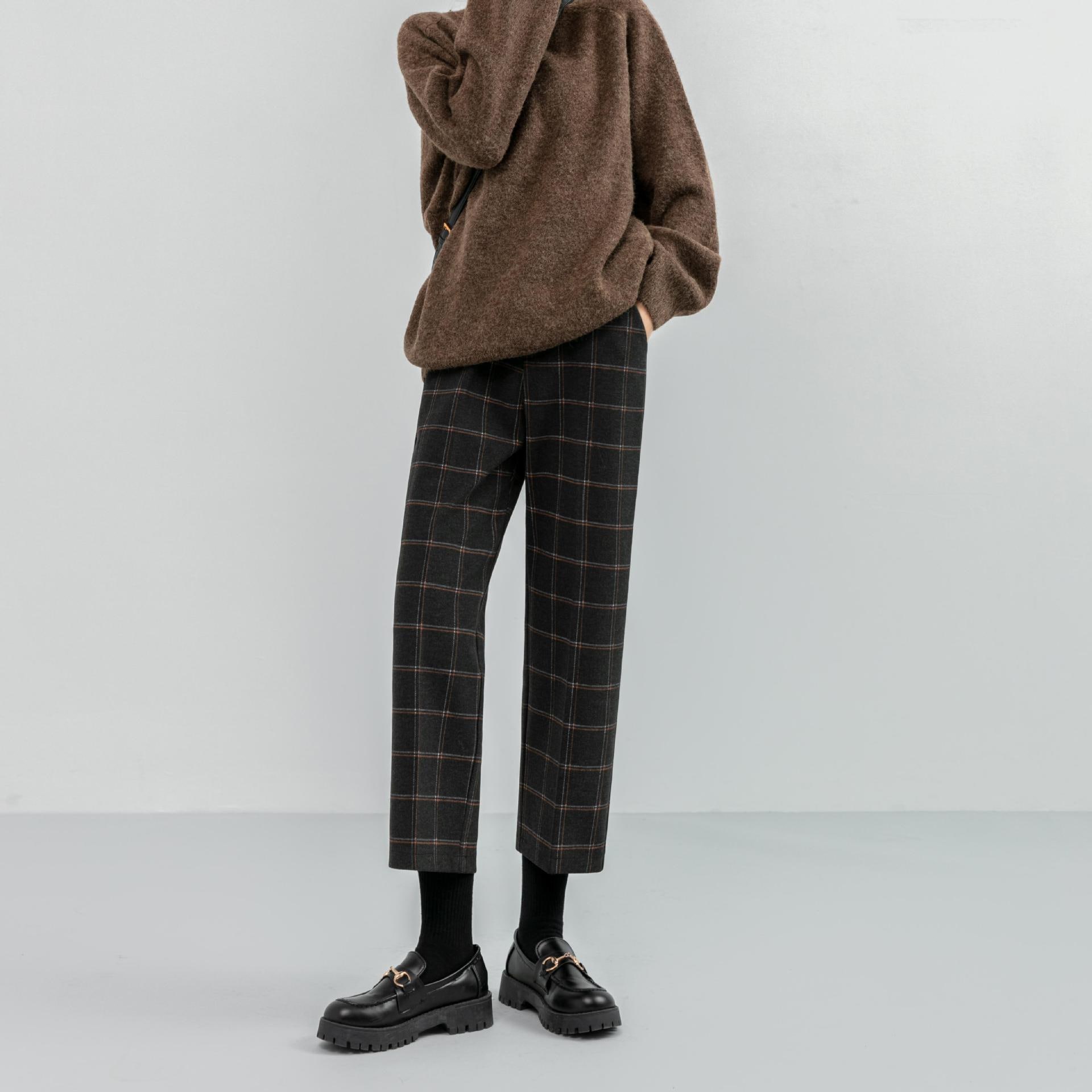 ラシャ格子はハイウエスト女性ストレート九分ズボンのブーツ厚手スラックスパンツ ロングパンツ