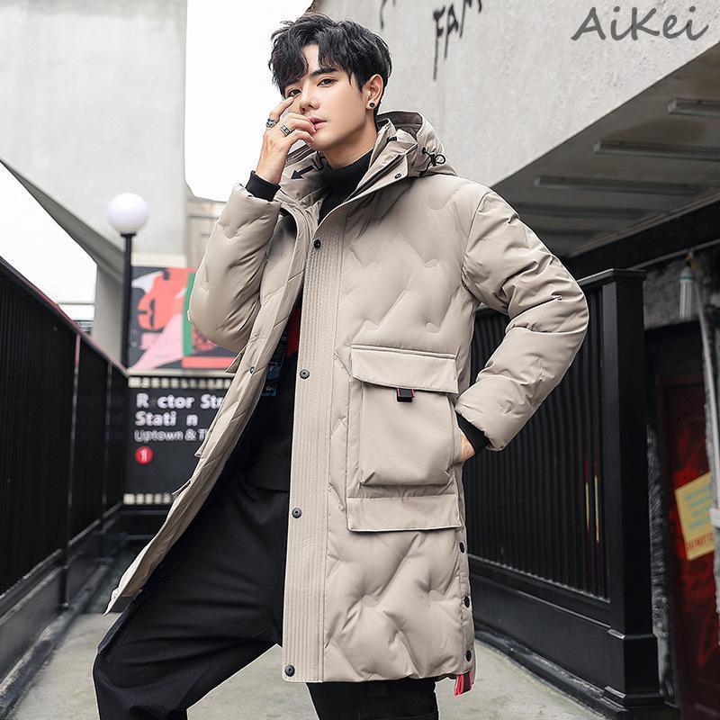 メンズ膝丈極寒ダウンジャケット冬新作フード付き厚手トレンドダウンジャケット ダウンジャケット