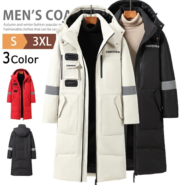 ダウンジャケット メンズ フード 暖かい 撥水 白 おしゃれ 防寒着 ロング ボリューム感 ゆったり ダウンコート ブルゾン 通学 カジュアル 男女兼用 アウター 冬