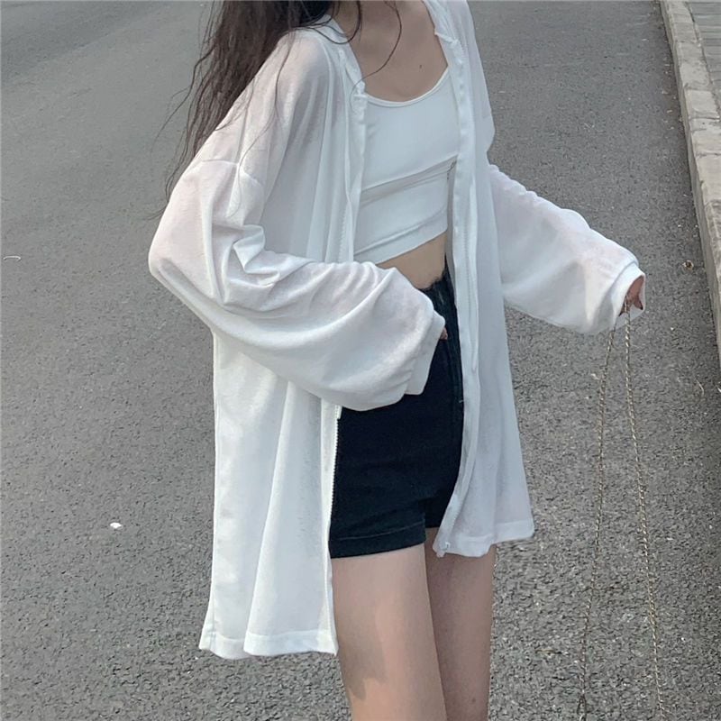 ジャケツト 紫外線対策 日焼け止めの外にはアイスシルクの極薄フードカーディガンクールコート夏韓版新作長袖ゆったりトップス 涼しく楽ちんセットアップ 春ジャケット チェスターコート 大人っ メガ割