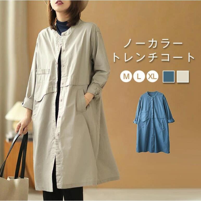 トレンチコートノーカラースプリングコートレディーストレンチシャツゆったり体型カバーカジュアル着痩せ通勤通学きれいめ大きいサイズ春秋 その他 アウター