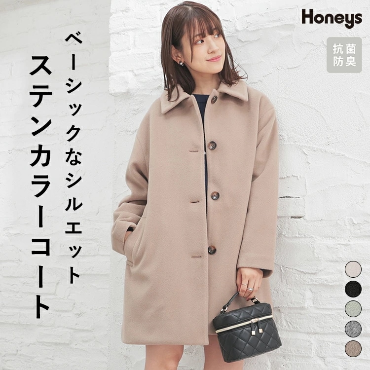 Honeys ステンカラーコート アウター 抗菌 抗菌防臭 静電気軽減 防臭 コート シャギー素材 裏地付き その他 アウター