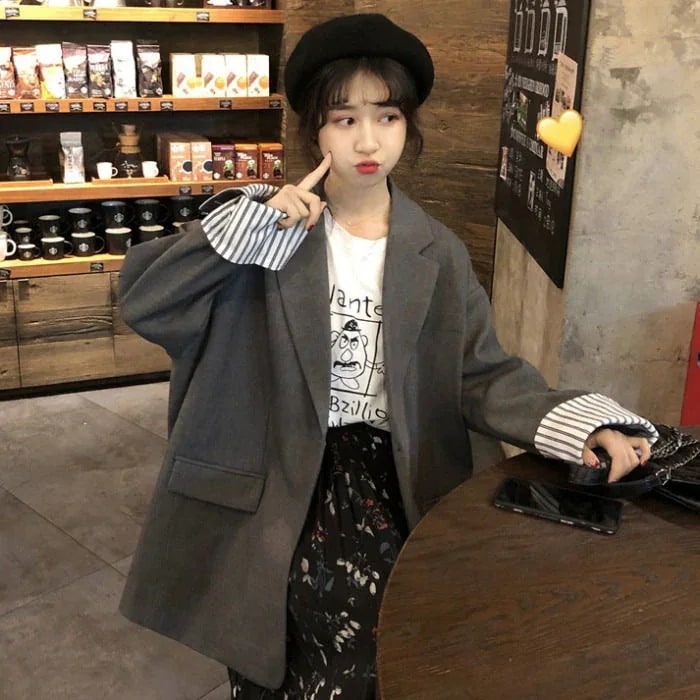 秋アウター スーツ2024春秋新作ブレザーカジュアル韓国版ミディアムブレザートップス学生ゆったり その他 アウター