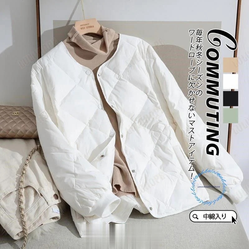 キルティング レディース ダウンコート ノーカラー ショート丈 ダウン 中綿入り おしゃれ 防寒着 ゆったり アウター 冬 暖かい 秋 その他 アウター