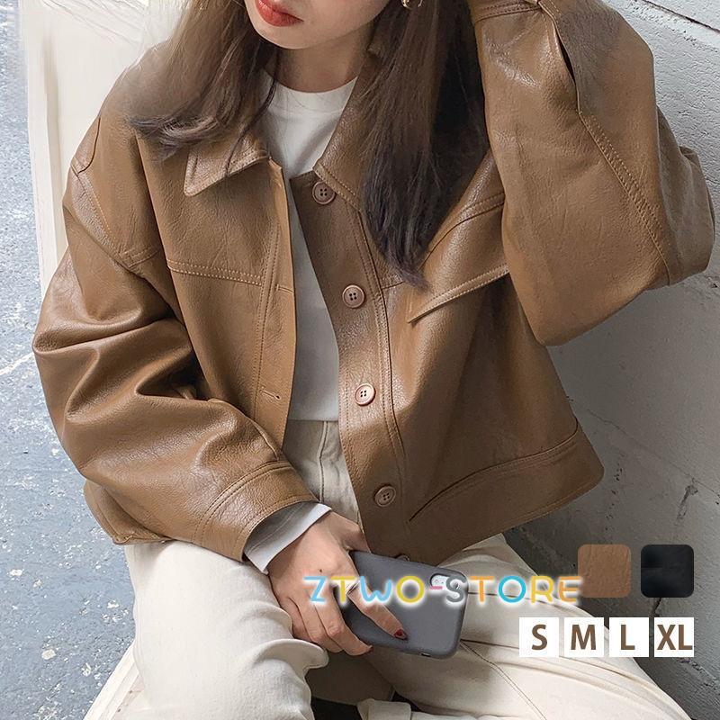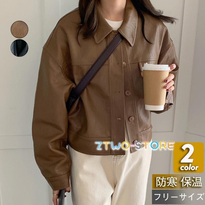 冬アウター 革ジャン レディース レザージャケット ライダースジャケット アウター 羽織 ゆったり カジュアル 開襟 着痩 韓国風 防風 春秋 高級感 おしゃれ