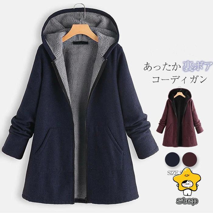 冬アウター コート レディース アウター 裏ボア 長袖 フード付き 裏起毛 秋 冬 冬物 ジャケット 大きいサイズ カジュアル 大人 体型カバー ゆったり 防寒 無地 あったか
