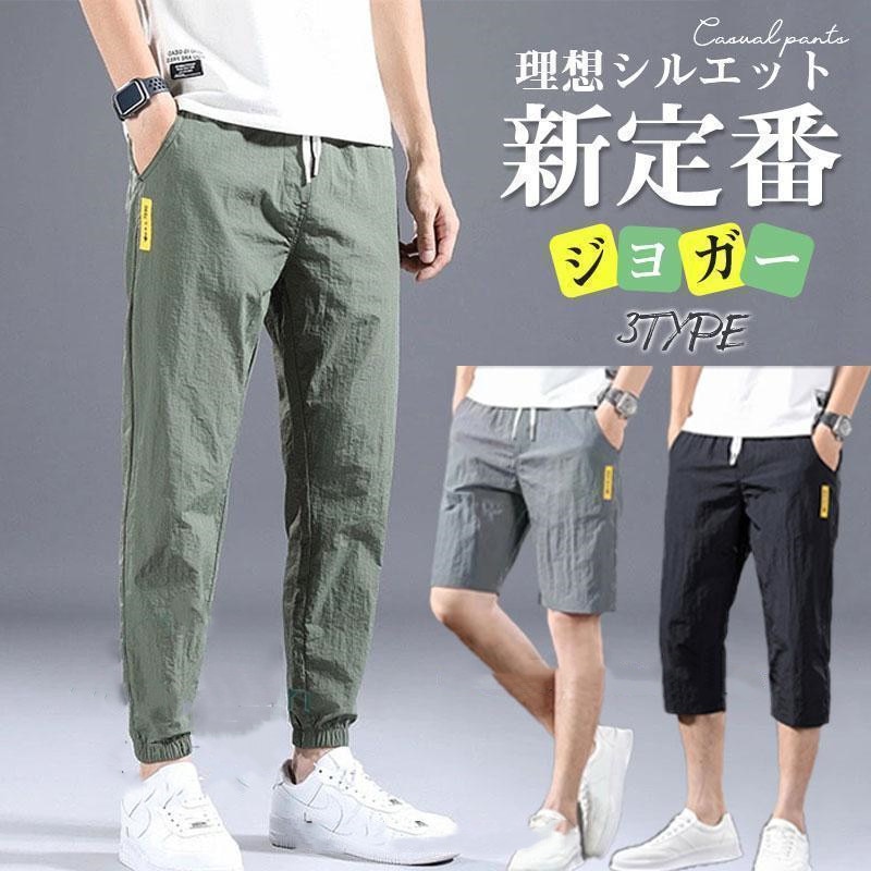 ジョガーパンツ 接触冷感 メンズ 7分丈 ショートパンツ 快適 薄手 夏 春 涼しい ズボン 通気 3TYPE 細身 速乾 吸汗 無地 大人 シンプル 上品 アウトドア