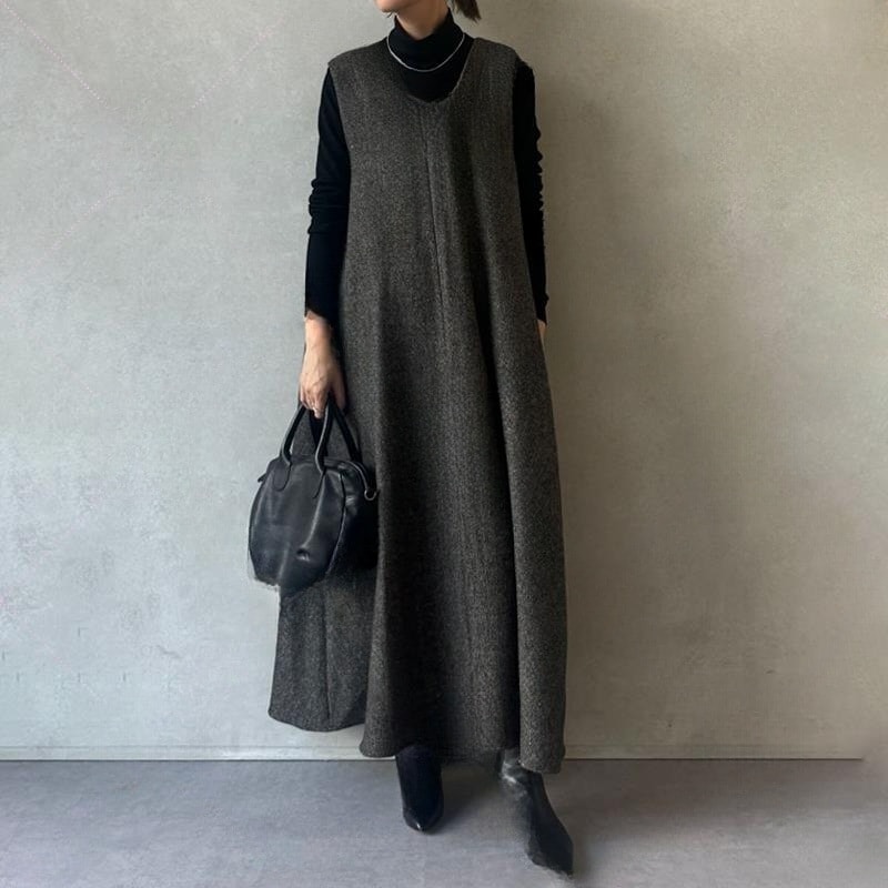 ワンピース ヴィンテージ ゆったり 細い ニットワンピース レディース 2025秋冬新作 ミディアム丈 インナーテイク ジャンパードレス 韓国ファッション