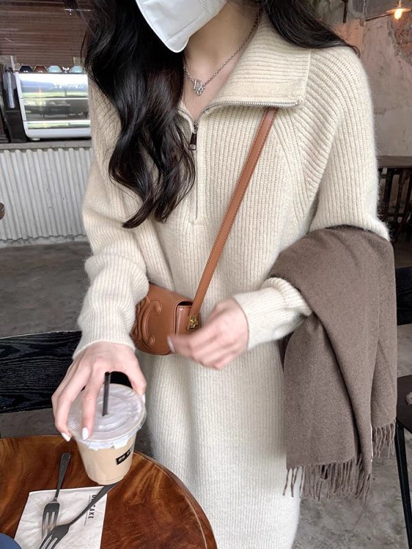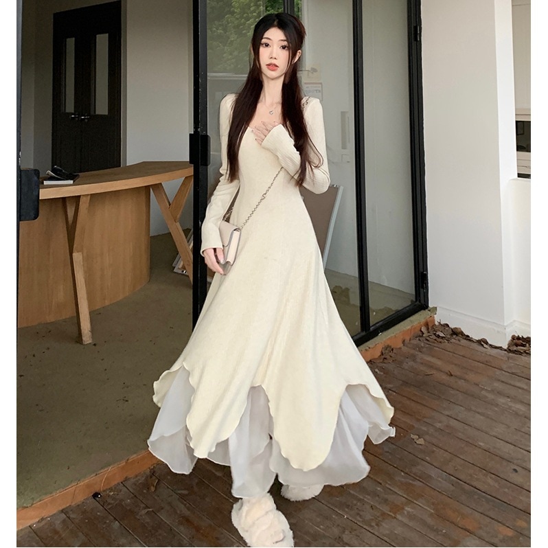 冬のワンピース ロングスカート フレンチワンピース ニットセーター ロングスカート 秋冬 ホワイト 韓国 ファッション レディース その他 ワンピース ドレス