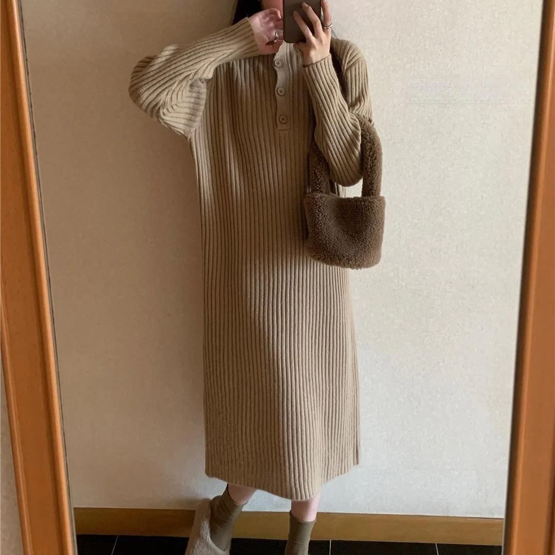 冬のワンピース ロングスカート 韓国ファッション レディース ニットセーター ロングスカート ニットワンピース 韓国 ゆとりがある やせて見える