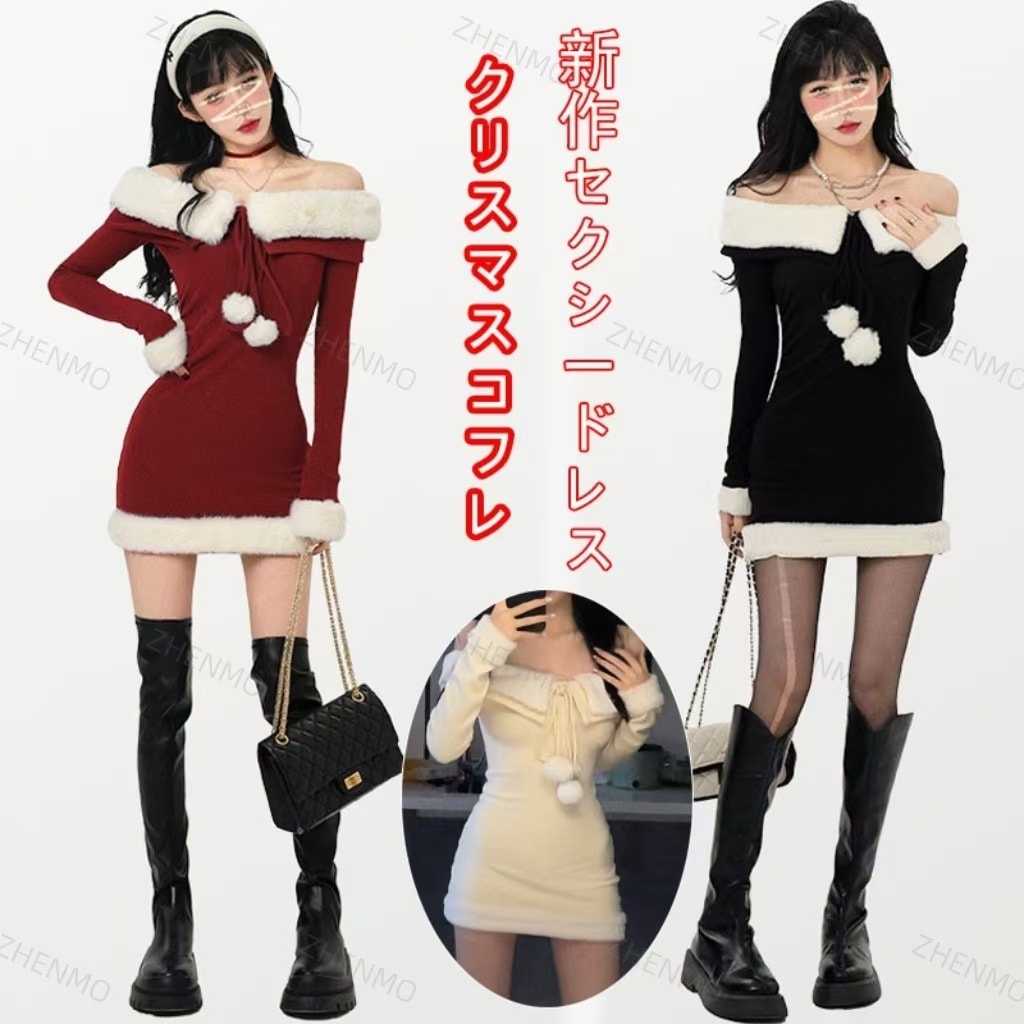 人気 クリスマス服装 スノートップ新ラムウールワン長袖ワンピース女性秋冬新作セクシーなスパイスガールズスリムパッケージヒップショート その他 ワンピース ドレス