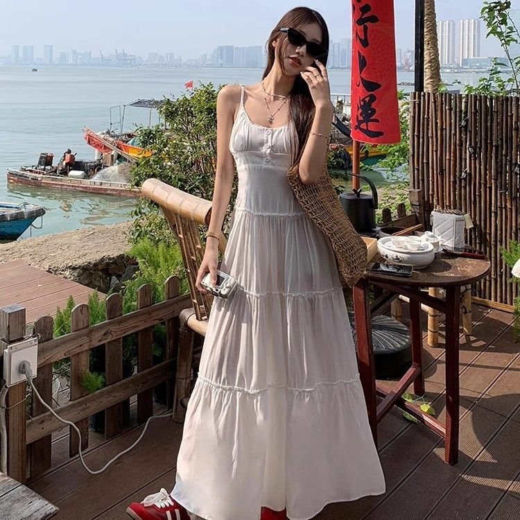 ヘビロテ キャミワンピース ホルタードレス 夏 フレンチエアー ウエスト シーサイド ホリデー Aライン ロングスカート その他 ワンピース ドレス