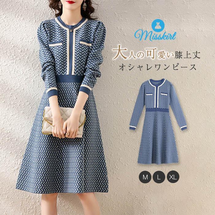 ワンピース 長袖 フレアワンピース ワンピース 膝丈ワンピース 膝丈 膝上丈 レディース 春秋 冬 エレガント 春 秋 冬 幾何柄 ハイウエスト シンプル きれいめ 通