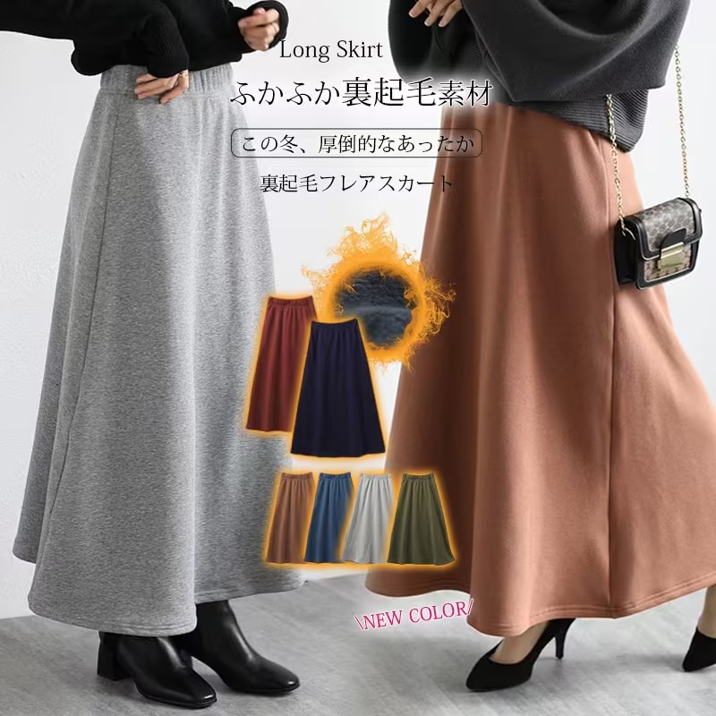 ロングスカート 裏起毛 スカートレディース ボトムス ロング丈スカート 無地 秋 冬 あったか 部屋着 ルームウェア スウェット スカート厚手 防寒 ミモレ丈 膝下 大きいサイズ ゆったり 秋 冬 可