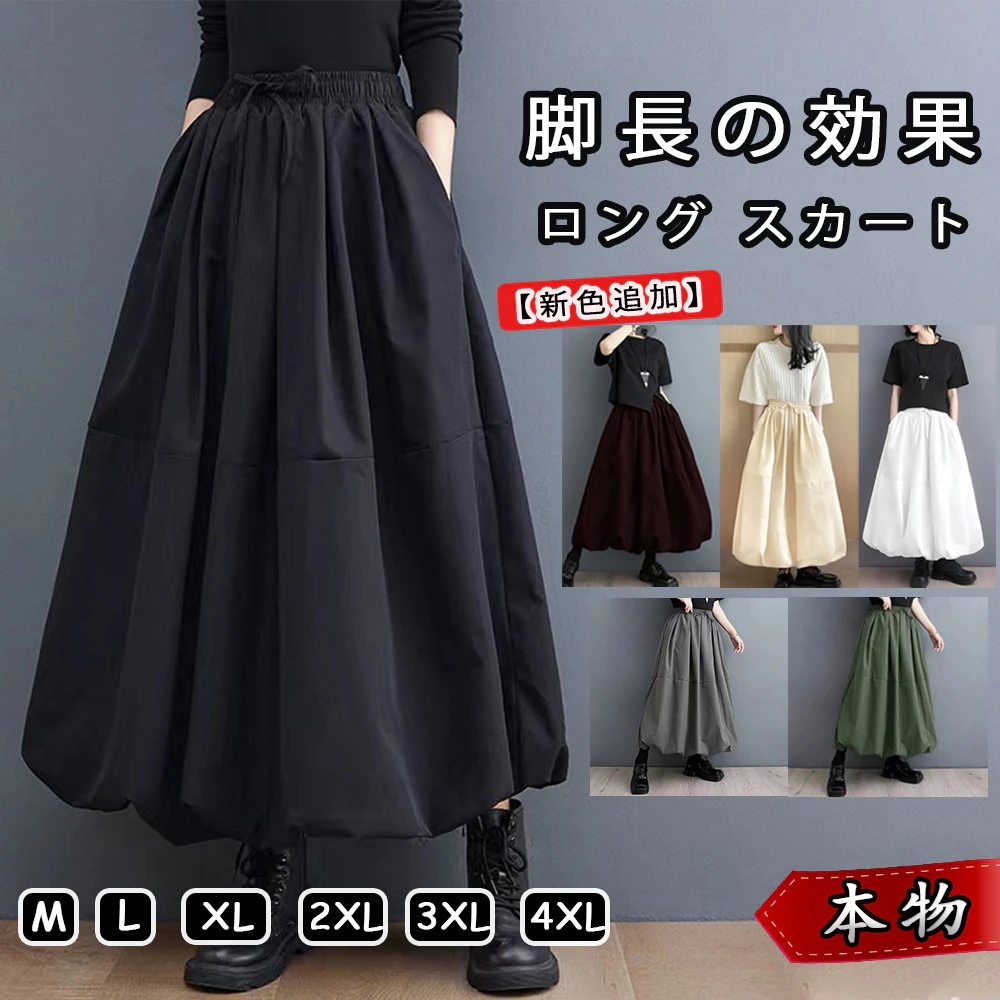 スカート ミディアムスカート バルーン ロング レディース 黒 大きいサイズ フレアスカート 秋コーデ ロングスカート シンプル ボトムス きれいめ 可愛い プリーツスカ ふわっとフレア