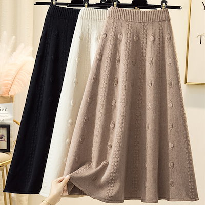 人气 新作マキシスカート セミスカート ニットスカートニットスカートプリーツスカートフレアスカートレディース 春と秋 ミドル丈 薄手 セミスカート 秋冬