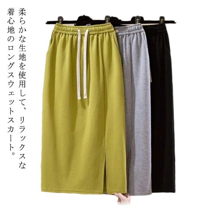 ロングスウェットスカート レディース スウェットスカート 春夏 秋冬 春秋 オールシーズン 綿混 スリット ストレッチ 伸縮性 Aライン Aラインスカート ウエストゴム 紐 タイトスカート イージース
