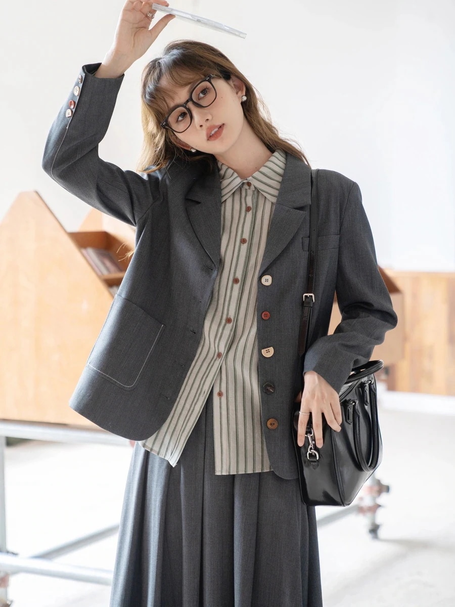小柄 体型カバー キャンパス風 韓国ファッション 急速出荷 品質保証 2025初春 メガ割 アウター 着痩せ トップス スーツジャケット 新作