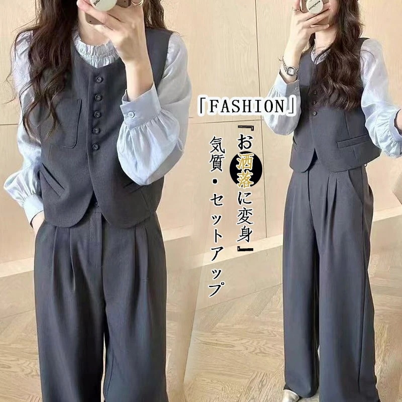 初春 セット 三点セット ズボン+ベスト + シャツ 卒業式 スーツジャケット パンツ テーラード ママスーツ 入園式 入学式 卒園式 フォーマル レディースファッション