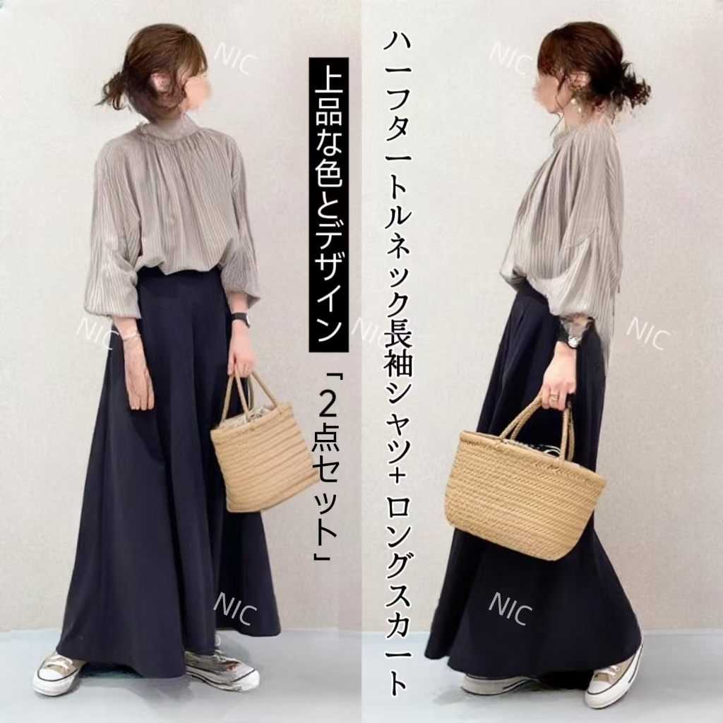 日系 大きめサイズ レディース 秋 冬 ニットセットアップ 体型カバー セーター トップス ロングスカート 二点セット 着痩せ セーター+スカート 秋冬 百掛け レディースファ